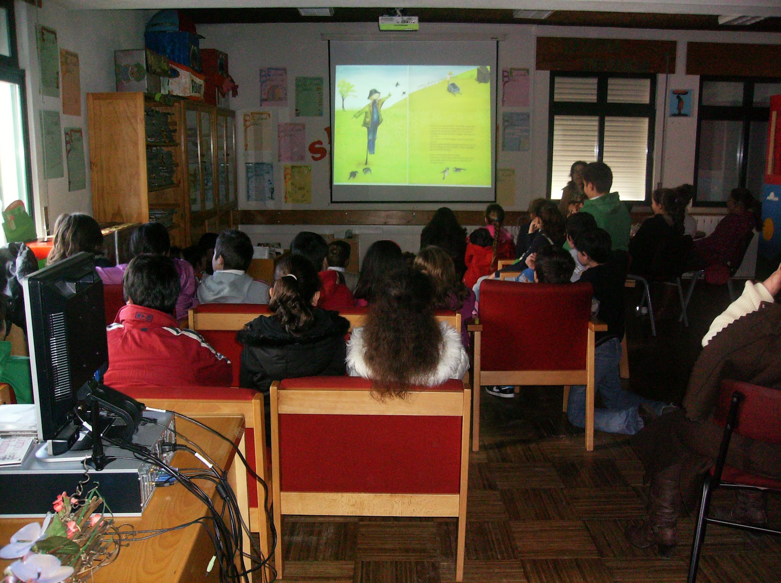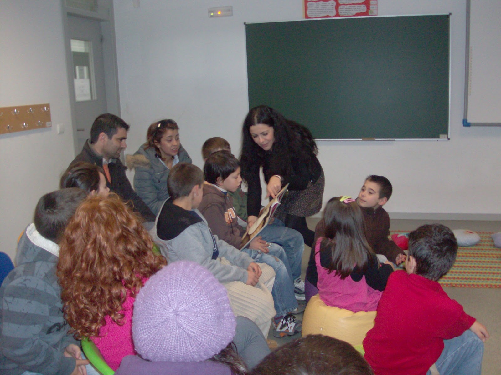 Hora do Conto com a Prof. Sónia na BE do Centro Escolar e os meninos do Jardim de Infância de Terras de Bouro.
