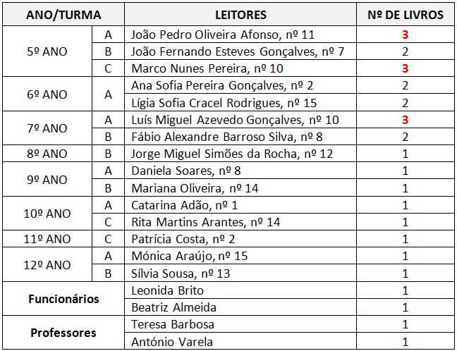 “Todos a Ler” (atividade interconcelhia) é uma atividade que decorrerá do dia 19 ao dia 22 (quinta- feira), envolvendo todos os alunos do pré-escolar, 1º ciclo e todas as disciplinas. A equipa das BE do Agrupamento disponibiliza os livros para a atividade. O livro a ler pelos alunos deverá ser iniciado no 1º tempo da manhã e continuado ao longo dos quatro dias (5/10m). Os alunos, no caso do 2º e 3º ciclo deverão encarregar-se de informar a página onde ficaram na disciplina anterior.