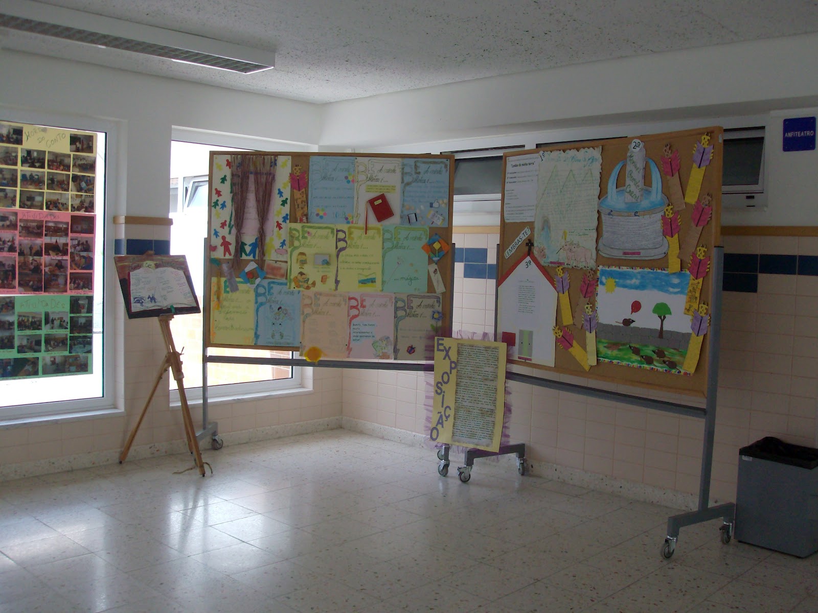 - “Exposição de trabalhos/materiais desenvolvidos pela BE”, no pátio do anfiteatro e em expositores à entrada do mesmo na EBS de Terras de Bouro bem como no espaço da BE de Rio Caldo, durante estes dois dias, estiveram expostos trabalhos desenvolvidos no âmbito do Plano Anual de Atividades, nomeadamente Hora do Conto, Dia internacional da BE, Semana da leitura, Feira do livro, Dia do autor Português, Dia da mulher, Dia do pai, Dia da Mãe, Oficina da poesia, Todos a ler, atividades de articulação com a comunidade, encontro com escritores e a tela “Ler ao entardecer”. Esta exposição revelou-se muito agradável e enriquecedora para o público/ comunidade escolar, que compreendeu e apropriou-se das diversas atividades/ projetos desenvolvidos pela equipa, que reconheceu a forma colaborativa como agiram ao longo do ano e como conseguiram articular-se com todas as estruturas de coordenação educativa, de forma a fomentar nos alunos o hábito e o prazer da leitura e da escrita, utilizando e valorizando a biblioteca escolar. Diante desta exposição verificou-se que foram cumpridos os objetivos planeados neste âmbito.